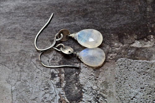 Recent jewelry work posted on Etsy for sale, featuring shimmering moonstone, sparkling amethyst, and soft translucent prehnite accented with three toned moonstone teardrops in simple modern, whimsical dressy or romantic elegant styles.